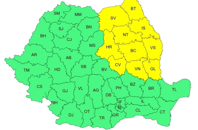 Totodată, meteorologii au emis și o avertizare cod galben pentru Moldova şi estul Transilvaniei, valabilă până marţi la ora 10.00.