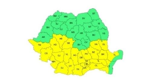 Meteorologii au emis un cod galben de caniculă, valabil luni, în intervalul orar 12:00 – 21:00. În aceste zone, vremea va deveni sufocantă, iar disconfortul termic va fi accentuat, în special în orele amiezii.