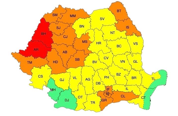 În județele Arad și Bihor valul de căldură va persista pentru a opta zi consecutiv. Temperaturile maxime vor fi în jurul a 38 de grade. Va fi caniculă și disconfort termic deosebit de accentuat, iar indicele temperatură-umezeală (ITU) va depăși pragul critic de 80 de unități. Minimele, de 18...23 de grade, local vor caracteriza o noapte tropicală.