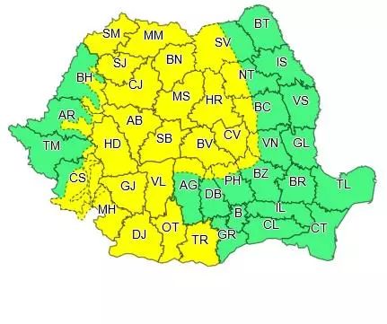 Administrația Națională de Meteorologie a emis mai multe atenționări cod portocaliu și cod galben de vreme rea, valabile pentru mai multe zone din țară.