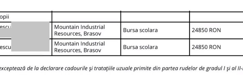 Doar în ultimele 6 luni, a desfășurat proceduri de achizitie, a făcut comisiile pentru aceste achizitii si a semnat nu mai putin de 5 contracte cu Mountain Industrial Resources, firma care i-a sponsorizat studiile copiilor.