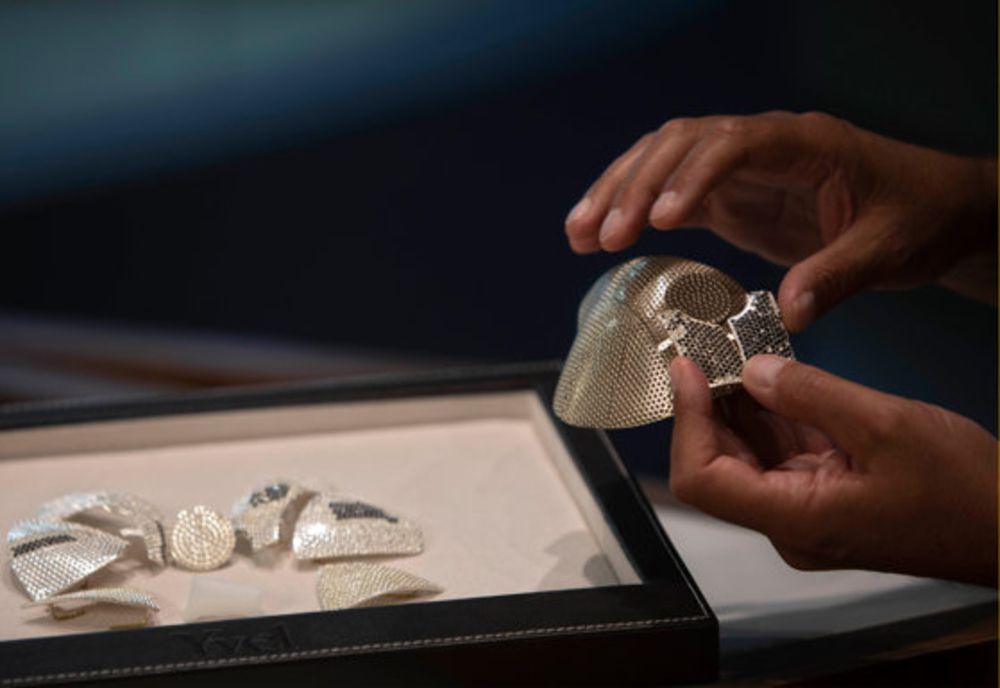 Masca este decorată cu 3.600 de diamante albe și negre și aur de 18 karate