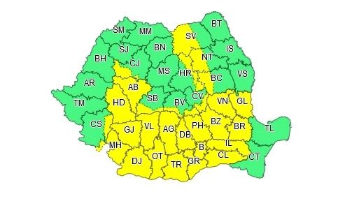 Administrația Națională de Meteorologie a emis o atenționare cod galben de vreme rea, valabilă pentru mai multe zone din țară.
