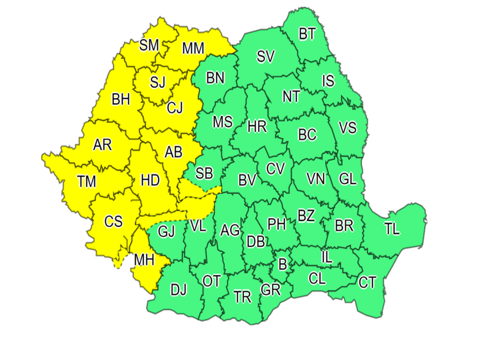 Administrația Națională de Meteorologie a emis o avertizare COD GALBEN