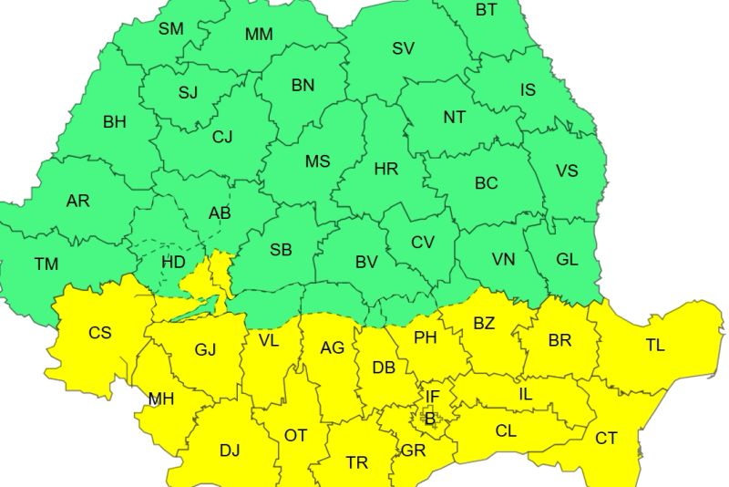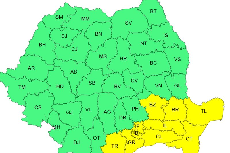 De asemenea, este cod galben, în intervalul 6 decembrie, ora 08 – 6 decembrie, ora 20, în Dobrogea, sudul, centrul şi estul Munteniei