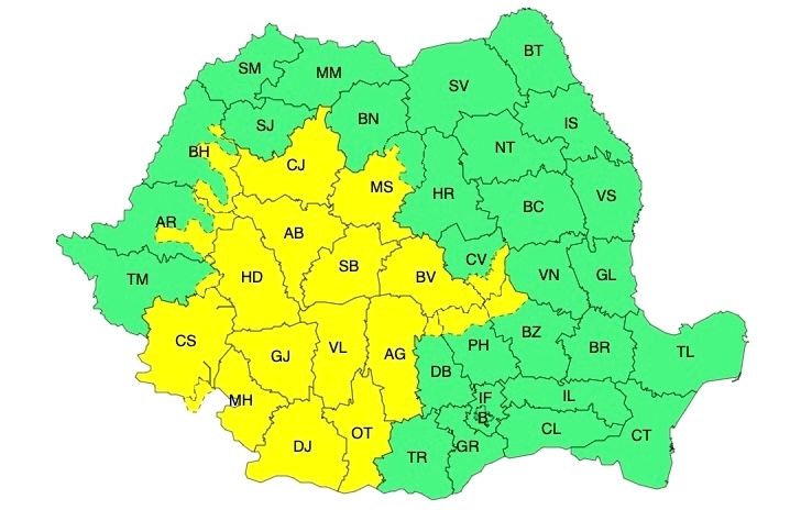 Cod galben de vreme rea, în aproape jumătate de țară