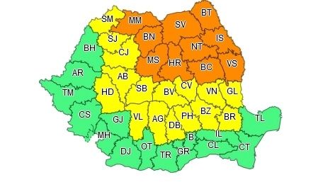 În județele Maramureș, Bistrița-Năsăud, Mureș, Harghita, Suceava, Neamț, Bacău, Botoșani, Iași și Vaslui vor fi perioade cu instabilitate atmosferică deosebit de accentuată. Vor fi vijelii puternice, intensificări ale vântului cu rafale de peste 70...80 km/h, frecvente descărcări electrice și grindină. Pe alocuri aversele vor fi torențiale, iar cantitățile de apă vor depăși izolat 25...30 l/mp.