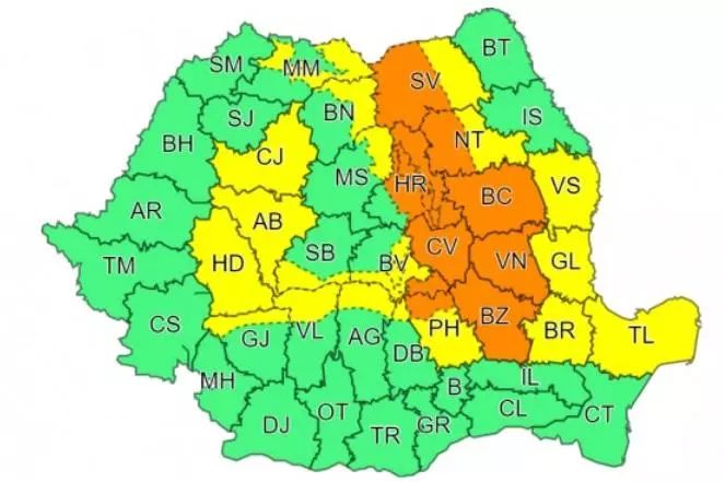 Zone afectate: județele Bacău, Vrancea, Buzău, Covasna și zona montană a județelor Prahova, Brașov,Harghita, Neamțși Suceava