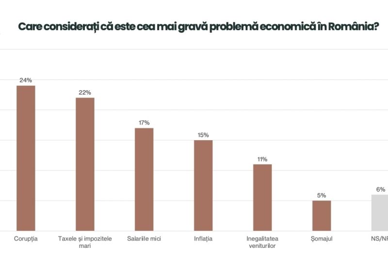 Potrivit sondajului INSOMAR, la întrebarea "Care considerați că este cea mai gravă problemă economică în România?", românii au indicat, în principal, corupția (24%). Pe locul 2 se află taxele și impozitele mari - 22%.