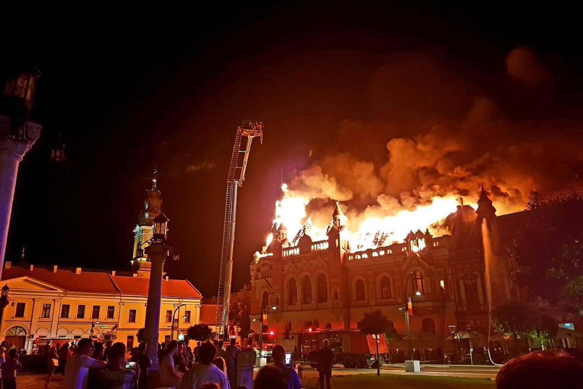 Sâmbătă seara, sediul Episcopiei Greco-Catolice din Oradea a luat foc, flăcările cuprinzând întregul acoperiș al clădirii care a găzduit cândva Biblioteca Județeană „Gheorghe Şincai”. Traficul în zonă a fost restricționat. Circulația mijloacelor de transport în comun este întreruptă iar circulația rutieră este deviată pentru a se putea oferi acces autospecialelor de intervenție. Câteva sute de orădeni s-au strâns în Piaţa Unirii şi transmit live folosind telefoanele mobile, dar sunt ţinuţi la distanţă de echipaje ale poliţiei. [embed]https://www.facebook.com/1885431228163397/videos/681132415601866/[/embed] În jurul orei 22:30 turnul clădirii s-a prăbușit iar echipajele de pompieri încearcă să împiedice flăcările să se extindă către clădirile învecinate. Deoarece reţeaua publică de apă nu face față, pompierii încearcă să tragă apă din Crişul Repede, utilizând o pompă electrică şi un furtun lung de câteva zeci de metri. Prefectul județului Bihor, Ioan Mihaiu a avut o intervenție la Digi24 explicând că oamenii din clădirile învecinate au fost evacuați iar autovehiculele aflate în zonă au fost mutate.