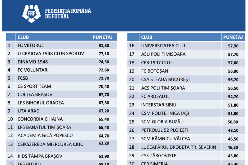 Federația Română de Fotbal anunță încheierea procesului de clasificarea a academiilor de fotbal pentru copii și juniori pentru sezonul 2019-2020. În ședința CEx s-a decis ca începând din sezonul 2021-2022 licențierea pentru Liga 1 să depindă și de punctajul academiei fiecărui club din primul eșalon.FRF a demarat în 2019 procesul de clasificare pe baza standardelor de calitate a academiilor, cluburilor cu activitate de copii și juniori și centrelor pentru fotbal juvenil din România. Proiectul a fost configurat cu sprijinul companiei olandeze NMC Bright, care are peste 15 ani de experiență în evaluarea, clasificarea și activitatea de consultanță a academiilor de fotbal europene.Până pe 15 martie 2019, cluburile doritoare s-au putut înscrie în procedura de evaluare. 107 cluburi din 108 participante în competițiile de juniori FRF au depus cereri de clasificare.LPS Bihorul Oradea s-a clasat pe locul 8, după academii ale unor echipe precum FCSB, Dinamo, U Craiova sau Viitorul, cu un punctaj total de 67,50. Acest punctaj clasând LPS Bihorul Oradea primul în ierarhia Liceelor cu Program Sportiv din ţară.
