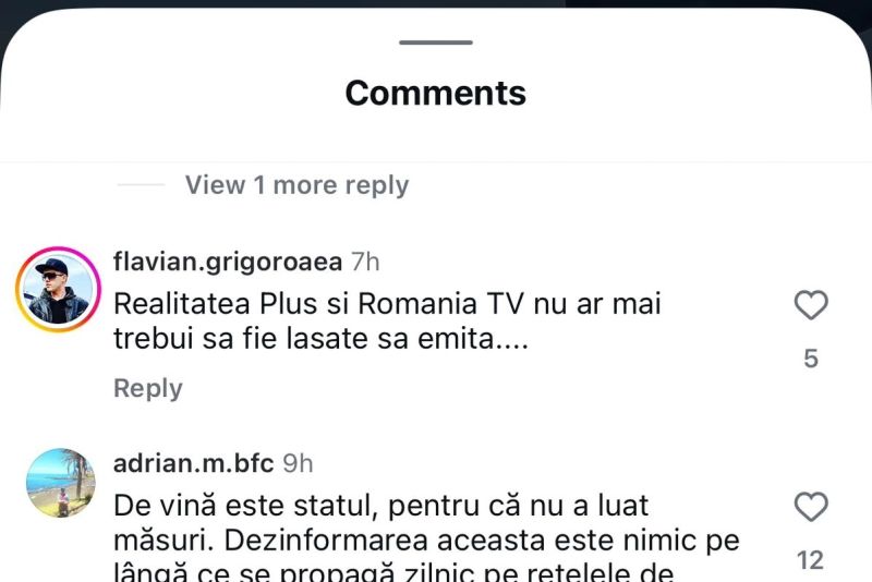 O altă persoană spune: „Votați cu un like dacă doriți desfințarea postului Realitatea TV”.