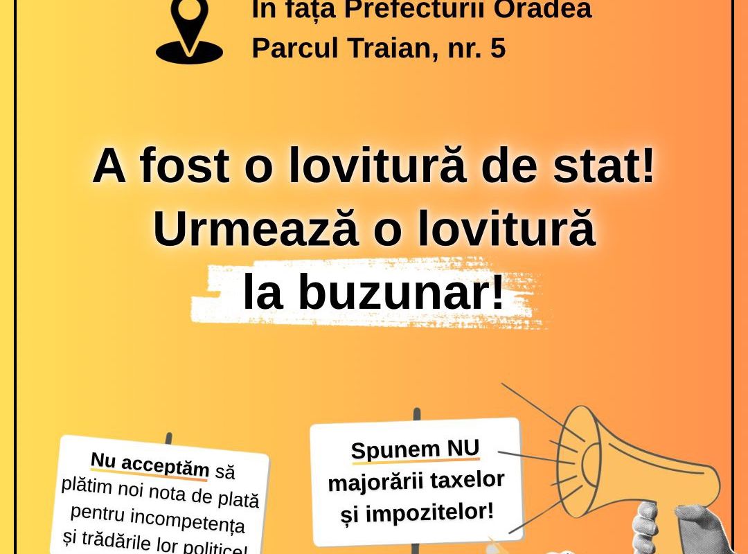 E timpul să ne facem auziți! Ieși în stradă pentru drepturile tale, pentru viitorul copiilor tăi, pentru demnitate! Vocea noastră trebuie să răsune până în Palatul Parlamentului și în Primărie! Nu stați nepăsători și haideți în stradă cu toții! Protestăm pentru o Românie în care taxele nu sunt o povară, ci un instrument al binelui comun. Ne vedem în stradă pe 22 Iunie 2025, începând cu ora 18:00, în față la Prefectură - Parcul Traian, Nr. 5, Oradea.